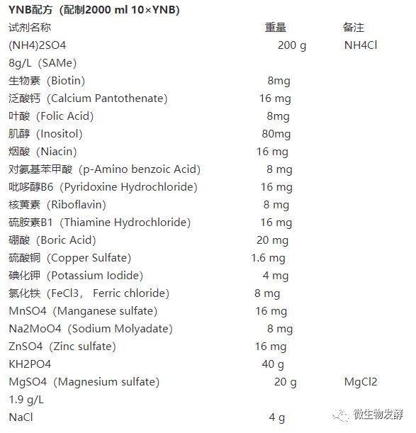 YNB配方